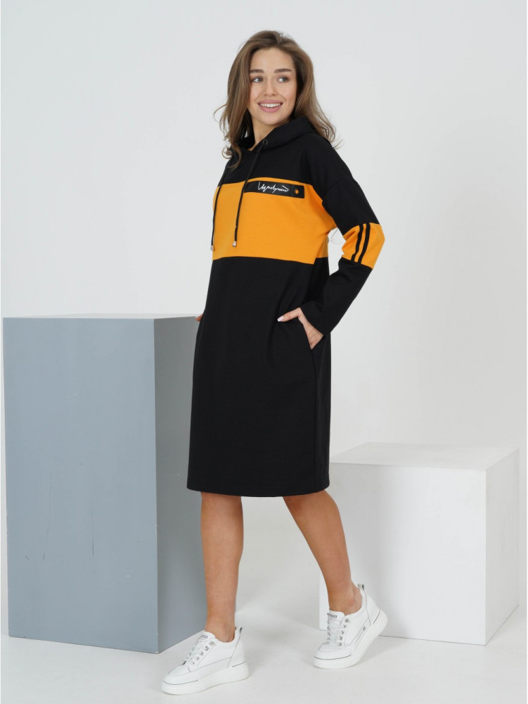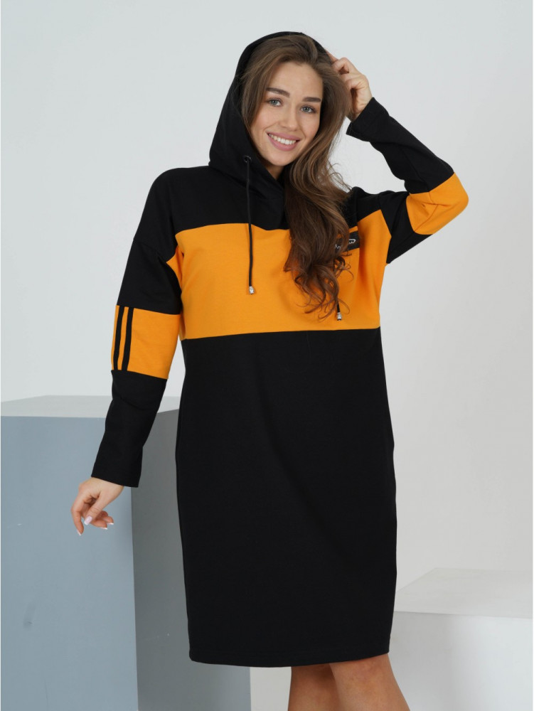На мой р-р 50 село свободно, рост 158- закрывает колено, рукава длинноваты. К телу приятное, креативное, хотя я особо не люблю спортивный стиль. С плотным чёрными колготками и ботинками без каблука отлично смотрится👍