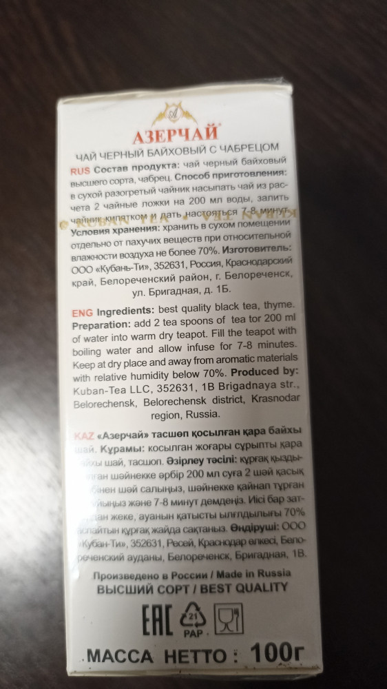 К сожалению их нет. Совсем не тот как был до 2019! Именно азерчай был лучшим с чабрецом - листья нежные и чабрец высушенный был. Я его покупала и привозила сама упаковками. А этот ужасно горький, едкий запах и мееееелкие иголки , как мусор от чабреца. И супер зеленые))
