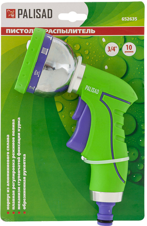 Palisad Пистолет-распылительВ данный момент этот товар отсутствует в продаже. Возможно, у нас найдется аналогичный или похожий товар здесь. Пистолет-распылитель c 9 режимами работы облегчает поливочные работы. Благодаря ему можно очистить садовые дорожки, промыть инвентарь, оросить клумбы и грядки и т. д. Пригодится владельцам загородных домов для ухода за садом и огородом, а также работникам коммунальных служб для работы в скверах, на придомовых территориях. Универсальный штуцер на пистолете подходит для любых систем полива ТМ Palisad и Palisad Luxe. |