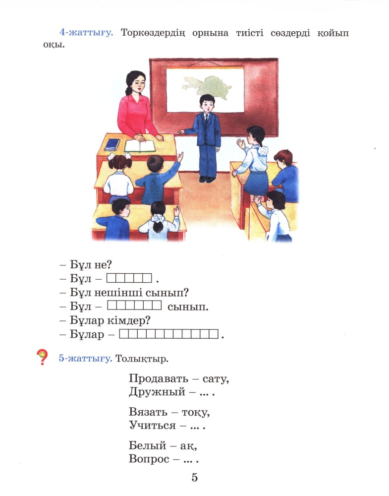 Я много искала пособия по изучению казахского языка. Дочке 6 лет, учится в 1 классе. И так как по новой методике их почти научат, то я решила взять в свои руки обучение казахскому языку. Осмотрела много сайтов и не нашла достойного пособия для ребёнка. Год назад, мы купили некоторые самоучители по казахскому языку на flip.kz. Да, все они яркие, но мало информации, нет закрепляющих заданий и упражнений. Самое лучшее и более менее пригодное, это "Казахский язык в картинках", там есть кроссворды и задания "найди слово", но хотелось бы чтобы побольше было таких игровых заданий, ребёнок лучше запоминает и усваивает тогда. И вот... Решила я от безысходности приобрести учебник данный. Ужасно недовольна - не интересно, не информативно, вообще никак! Когда уже переймут методику обучению английскому языку и применят для казахского языка! На сегодняшний день ни одного годного пособия нет, для изучения казахского языка, все новые самоучители - это тупо перепечатанные старые!