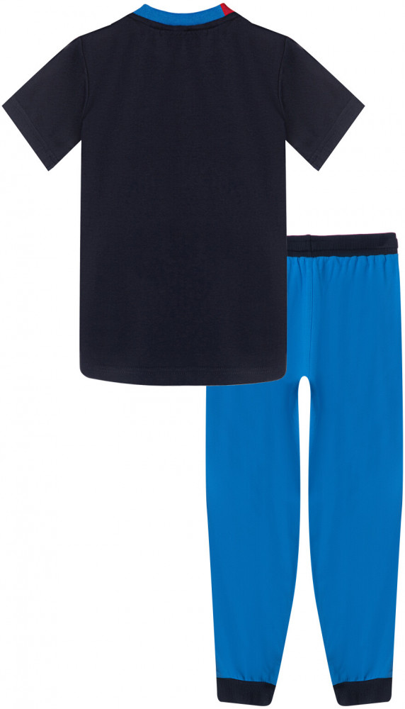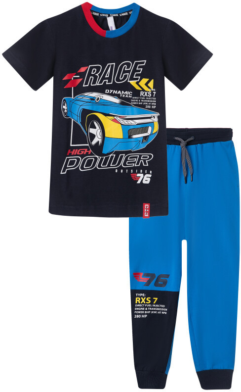 Комплект: футболка и брюки. Выполнен из качественного эластичного и приятного на ощупь трикотажа разных цветов. Посадка regular fit — классический крой. Брюки с карманами в боковых швах. Эластичный пояс со шнурком. Высокое содержание хлопка 95%. Благодаря наличию эластана в составе ткани изделие держит форму и меньше мнется.