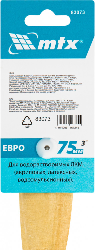 Matrix MTX Кисть плоскаяВ данный момент этот товар отсутствует в продаже. Возможно, у нас найдется аналогичный или похожий товар здесь. Серия: Евро Плоская кисть MTX «Евро» шириной 3″, с искусственной щетиной и деревянной ручкой, предназначена для малярных работ. Оптимальна для работы с водорастворимыми ЛКМ (акриловыми, латексными, водоэмульсионными), удобна для обработки участков небольшой площади. Кисть подходит для профессионального использования. |
