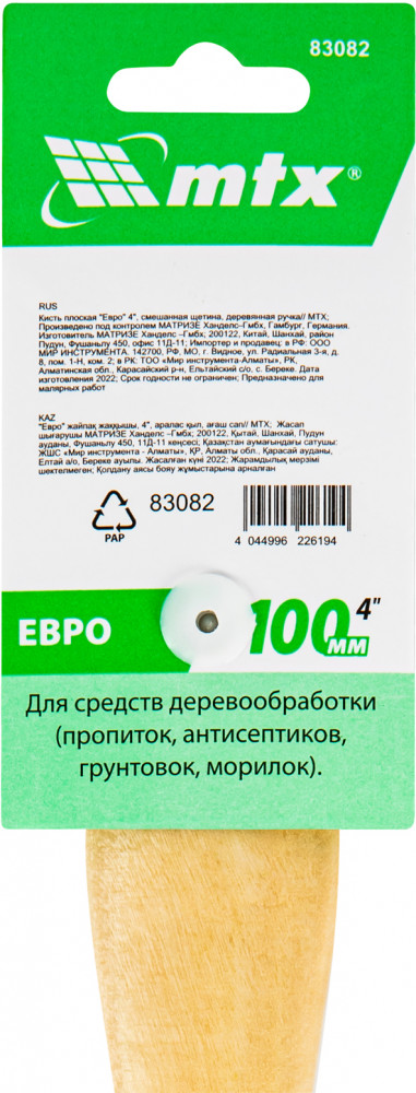 💳 Оплатить за товар можно при получении 🇰🇿 Есть бесплатная доставка по Казахстану от 1 дня 🎁 Копите бонусы с каждой покупки Серия: Евро Плоская кисть MTX «Евро» шириной 4″, с искусственной щетиной и деревянной ручкой, предназначена для малярных работ. Оптимальна для работы с водорастворимыми ЛКМ (акриловыми, латексными, водоэмульсионными), удобна для обработки участков небольшой площади. Кисть подходит для профессионального использования. |