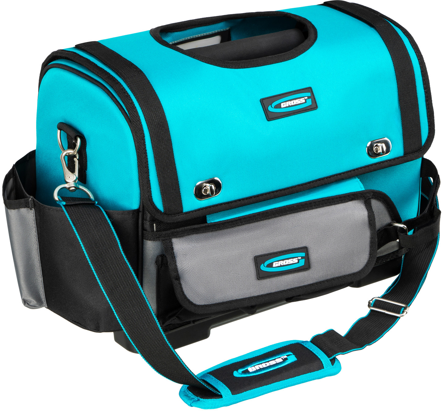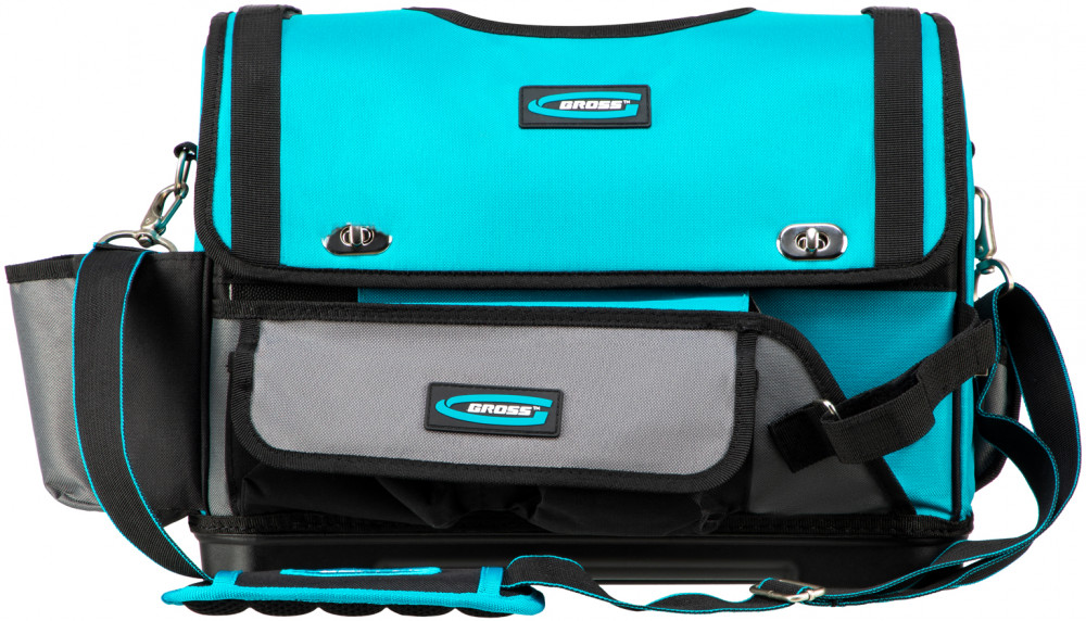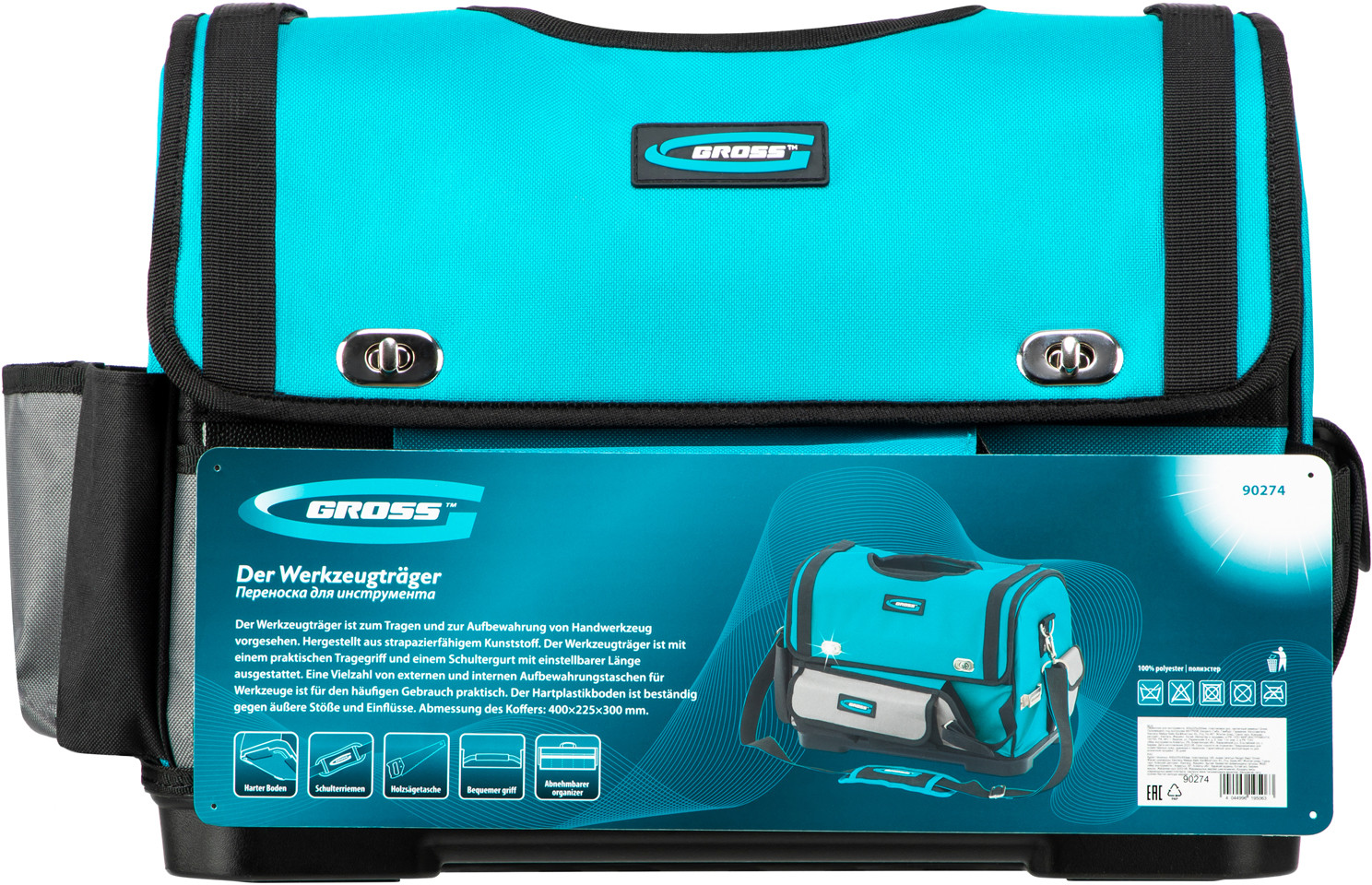 Переноска Gross размером 400 × 225 × 300 мм с пластиковым дном и наплечным ремнем используется для хранения и перемещения ручного и электроинструмента. Сумка с прочным дном и надежной ручкой выдерживает значительный вес. Пригодится дома, в гараже и поездке.