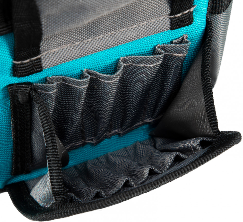 • Дополнительные возможности — в переноске предусмотрен отдельный карман для ножовки, а также зацеп для рулетки;