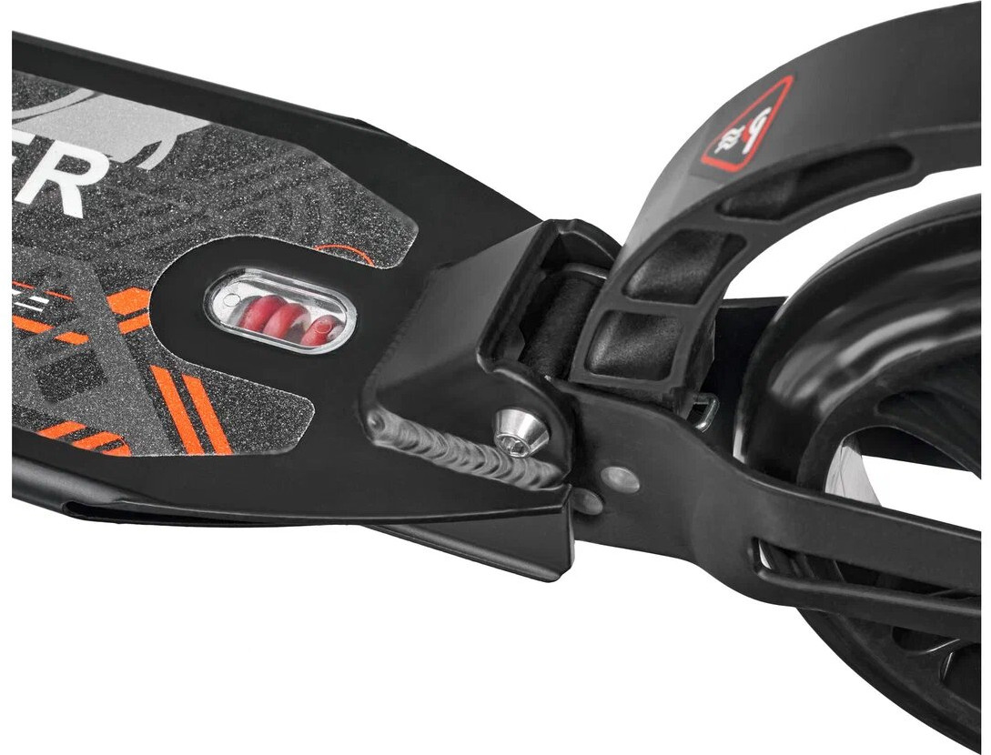 Заднее колесо городского самоката оснащено крылом-тормозом. Благодаря практичной складной подножке самокат можно припарковать без дополнительной опоры. Городской самокат имеет удобную систему складывания: его легко складывать, переносить или перевозить в багажнике автомобиля. В комплекте есть шестигранный ключ для сборки. Данная модель подходит как для новичков, так и уверенных райдеров.