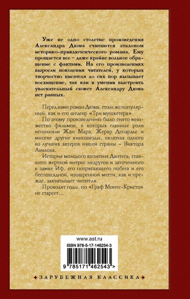 Граф Монте-Кристо. В 2-х книгах. Книга 1В данный момент этот товар отсутствует в продаже. Возможно, у нас найдется аналогичный или похожий товар здесь. Серия: Зарубежная классика Перед вами роман Дюма, столь же популярный, что и его шедевр «Три мушкетера». По этому произведению было снято множество фильмов, в которых главные роли исполняли Жан Марэ, Жерар Депардье и многие другие кинозвезды, включая одного из лучших актеров нашей страны — Виктора Авилова. История молодого капитана Дантеса, ставшего жертвой интриг недругов и заточенного в замке Иф, его потрясающего побега и его беспощадной, изощренной мести, как и прежде, захватывает читателя. Проходят годы, но «Граф Монте-Кристо» не стареет... |