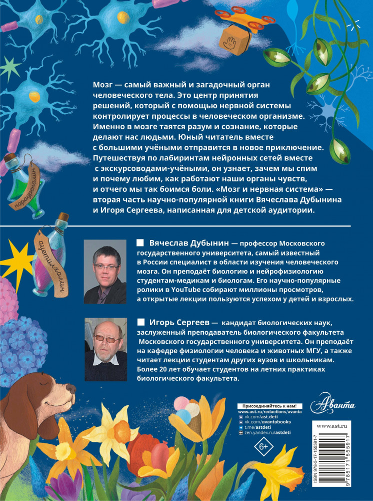 💳 Оплатить за товар можно при получении 🇰🇿 Есть бесплатная доставка по Казахстану от 1 дня 🎁 Копите бонусы с каждой покупки Серия: Большая наука детям Путешествуя по разнообразным системам человеческого организма, невольно задаёшься вопросом: «Кто же управляет всеми этими сложными структурами?» Казалось бы, ответ лежит на поверхности, — это мозг, самый сложноустроенный орган нашего тела. В действительности, мозг контролирует организм при помощи нервной системы, которая оплетает всё тело своими узлами. Выдающиеся учёные Вячеслав Дубынин и Игорь Сергеев предлагают юному читателю отправиться в захватывающее путешествие по нейронным сетям и отделам мозга, чтобы изучить принципы работы важнейших систем нашего организма. В очередной раз два суперизвестных учёных расскажут детям о большой науке. |