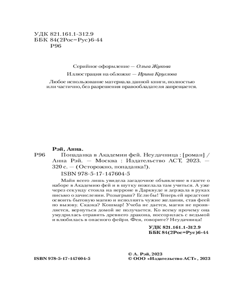 💳 Оплатить за товар можно при получении 🇰🇿 Есть бесплатная доставка по Казахстану от 1 дня 🎁 Копите бонусы с каждой покупки Серия: Осторожно, попаданка! Майя всего лишь увидела загадочное объявление в газете о наборе в Академию фей и в шутку пожелала там учиться. А уже через секунду стояла на перроне в Дарквуде и держала в руках письмо о зачислении. Розыгрыш? Если бы! Теперь ей предстоит освоить бытовую магию и исполнять чужие желания, став феей по вызову. Сказка? Кошмар! Учеба не дается, магия не проявляется, вернуться домой не получается. Ко всему прочему, она умудрилась отравить древнего дракона, поссорилась с ведьмой и влюбилась в опасного фейри. Фея, говорите? Неудачница! |