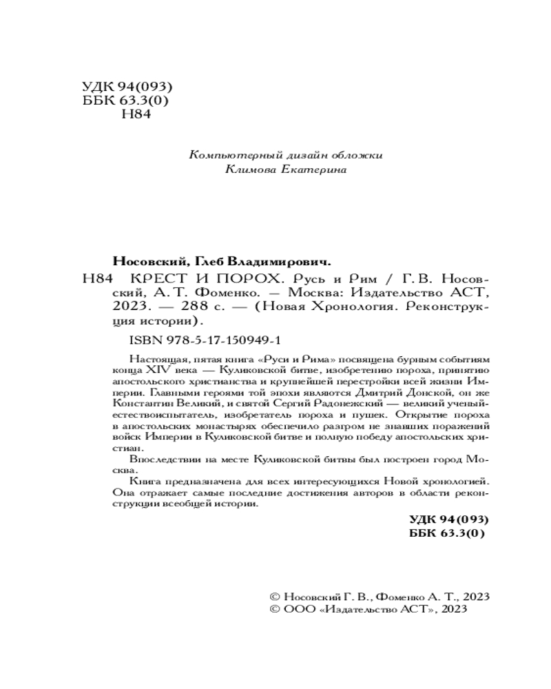 | Русь и Рим. Крест и Порох Анатолий Тимофеевич Фоменко, Глеб Владимирович Носовский