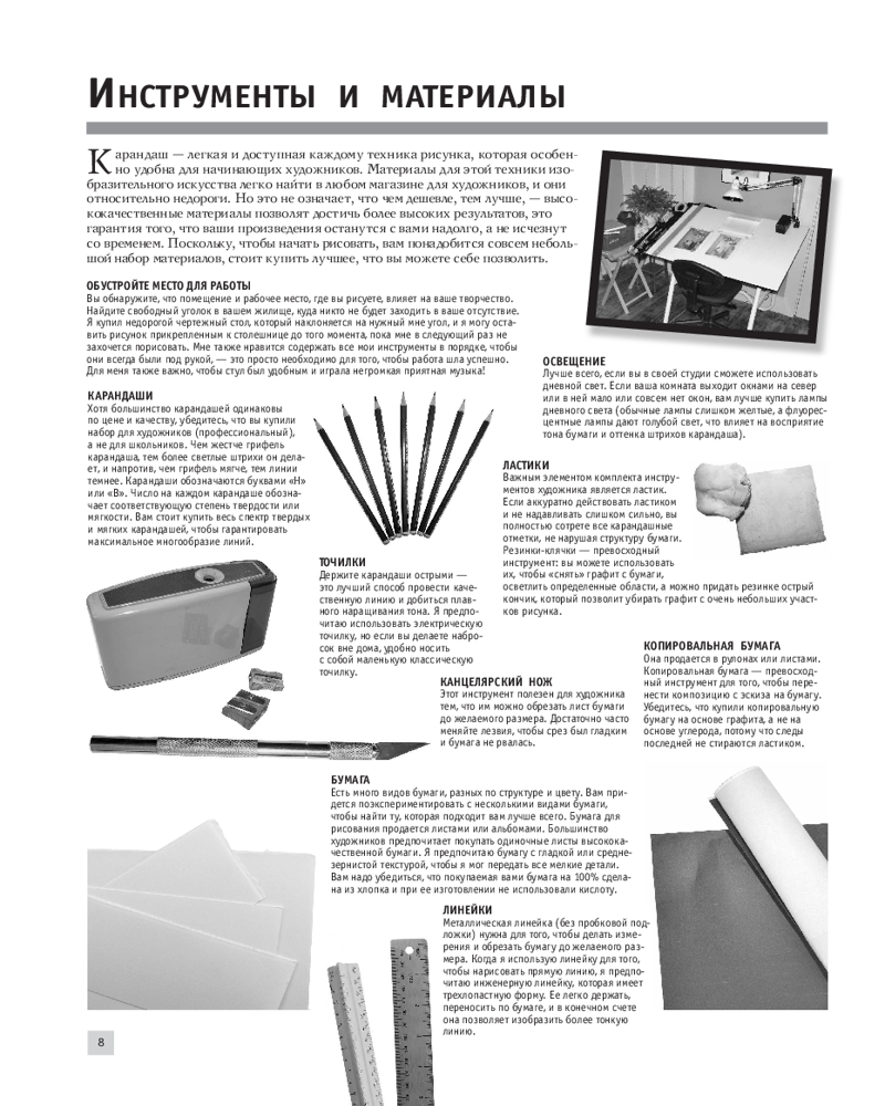 Из этого самоучителя вы также узнаете об основных способах штриховки, овладеете секретами работы с цветом, поэкспериментируете с эффектами освещения, научитесь использовать законы перспективы и композиции, сможете передавать форму и объем предметов с помощью карандаша и красок и выработаете свой индивидуальный стиль.