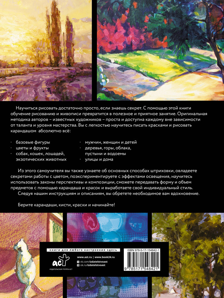 В данный момент этот товар отсутствует в продаже. Возможно, у нас найдется аналогичный или похожий товар здесь. Серия: Школа рисунка Научиться рисовать достаточно просто, если знаешь секрет. С помощью этой книги обучение рисованию и живописи превратится в полезное и приятное занятие. Оригинальная методика авторов — известных художников — проста и доступна каждому вне зависимости от таланта и уровня мастерства. Вы с легкостью научитесь писать красками и рисовать карандашом абсолютно всё: