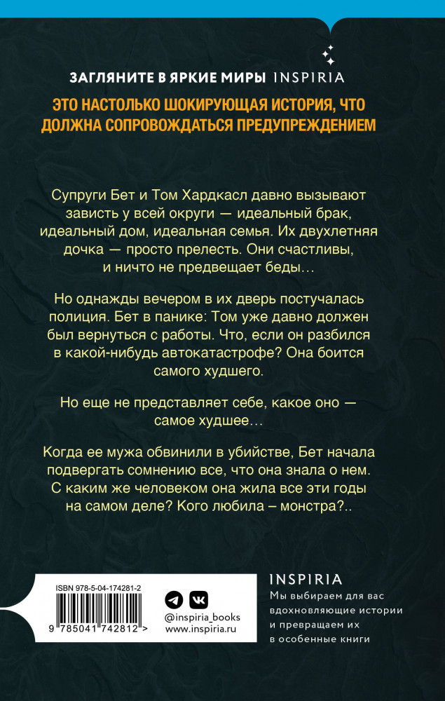 Когда ее мужа обвинили в убийстве, Бет начала подвергать сомнению все, что она знала о нем. С каким же человеком она жила все эти годы на самом деле? Кого любила — монстра?.. |