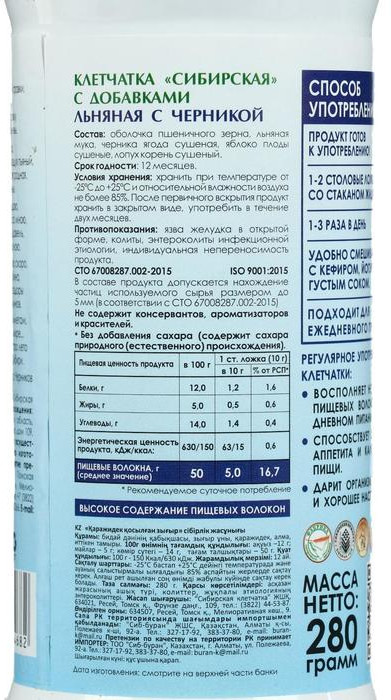 Сибирская клетчатка Клетчатка «Льняная с черникой»-35% +62