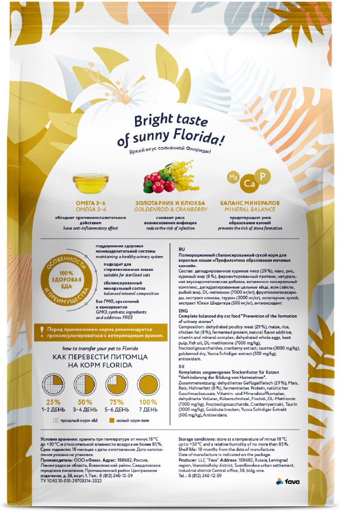 Florida Корм для взрослых кошек для профилактики образования мочевых камней «Urinary»