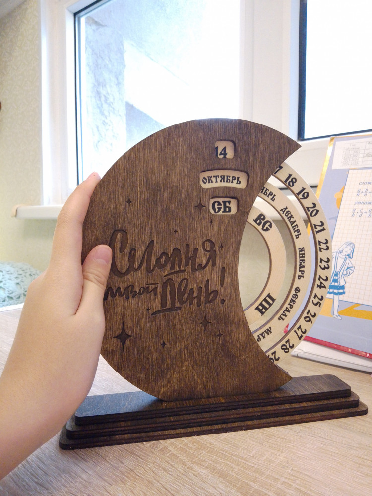 Сначала, когда придет товар, обручи с датой, будут трудновато поворачиваются, но можно приловчиться. Вскоре, дерево притереться друг к другу, и поворачивать кольца, будет легче. А так, все очень хорошо. Теперь не буду забывать какая сегодняшняя дата, когда буду делать домашнюю работу. 😘