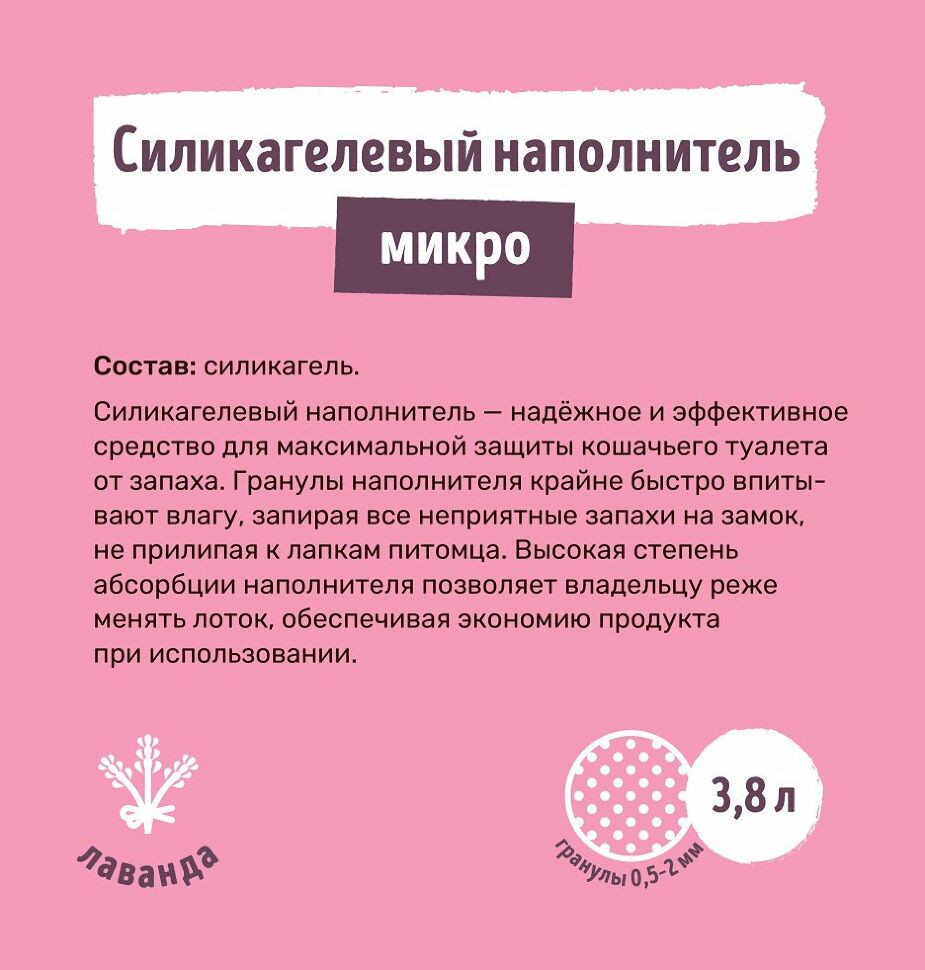 💳 Оплатить за товар можно при получении 🇰🇿 Есть бесплатная доставка по Казахстану от 1 дня 🎁 Копите бонусы с каждой покупки Микро-силикагелевый наполнитель с ароматом лаванды имеет натуральный, экологически чистый состав, обладающий антибактериальными свойствами и препятствующий распространению неприятного запаха. |