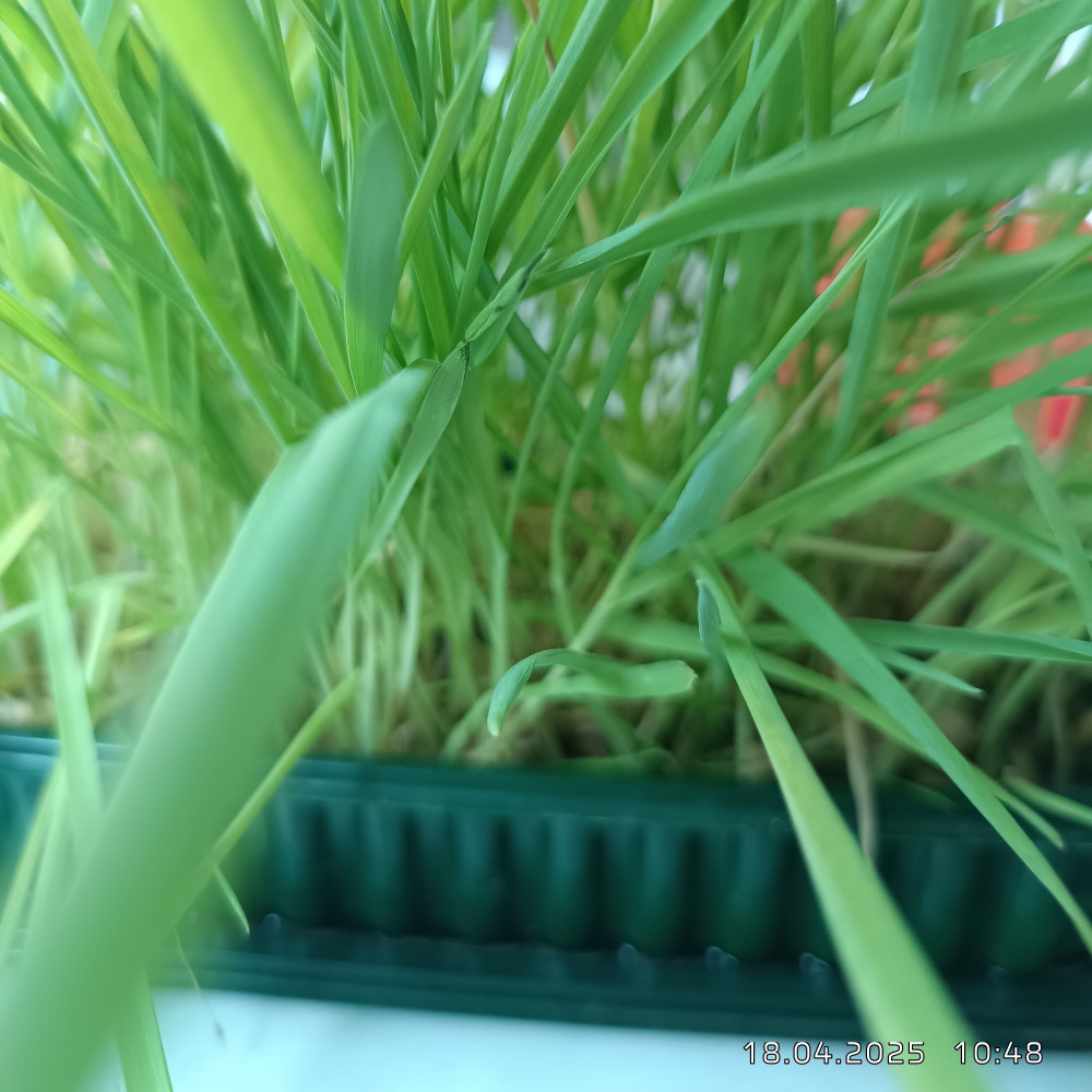 5. Поставьте лоток в светлое и тёплое место (20-25°С), поливайте травку по мере необходимости. При наличии воды в поддоне поливать не следует. Можно звать питомца лакомиться свежей травкой, как только она достигнет желаемой высоты. Также можно состричь зелень и смешать её с кормом.
