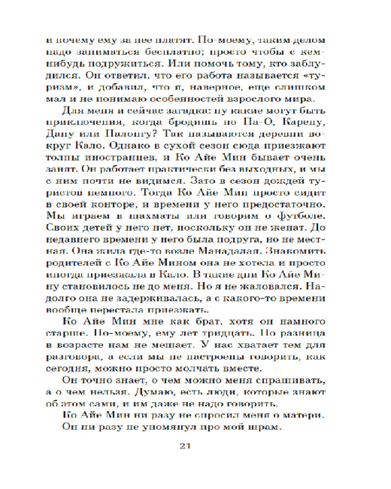 "Сердце, которое помнит" (Я.-Ф. Зендкер) - книжка в мягком, но красивом, переплёте; страницы белые, шрифт мелкий. Краткое содержание изложено в рекламном описании книжки, поэтому только мои впечатления. Несколько сложно сначала читать из-за имён, необычных для нас. Потом начинаешь разбираться, кто есть кто. Книжка интересная, но своеобразная, не назвала бы её очень лёгкой для чтения. Кто любит детективы - тем книга не понравится. Хорошо описаны взаимоотношения любви, если она - из США, а он - из Бирмы. Разные уклады жизни, которые сложно "состыковать". Военные события, пожар в монастыре, дети-инвалиды - это трагично, представляет ещё достаточно проблем. Чтобы понять все эти перипетии, нужно читать книжку очень внимательно. Мне книжка понравилась, но я люблю книги такого типа. Хотя, повторяю, это моё мнение. Жаль только, что книжка в мягком, а не твёрдом, переплёте.