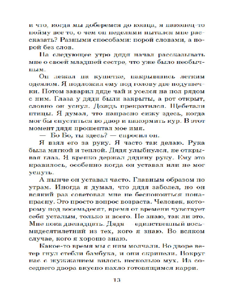 Сердце, которое помнитВ данный момент этот товар отсутствует в продаже. Возможно, у нас найдется аналогичный или похожий товар здесь. Серия: The Big Book (мягкая обложка) Двенадцатилетний Бо Бо — необычайно проницательный ребенок, он умеет читать эмоции людей по их глазам. И этот дар сильно осложняет жизнь мальчика, который живет со своим восьмидесятилетним дядей в небольшом городке в Бирме и страстно хочет узнать, почему отец навещает его лишь раз в год, а мать вообще не приезжает. И дядя рассказывает ему не только потрясающую историю любви Джулии и Тхар Тхара, но и о страшных событиях, которые сломали Джулию. В памяти Бо Бо остались лишь обрывки воспоминаний о пожаре в монастыре, где он жил с родителями, о ране, которую в гневе Джулия нанесла своему сыну. Однако дядя говорит, что сердце помнит все. И Бо Бо, убежденный, что может исцелить свою мать, может научить ее жить в согласии с собственным сердцем, отправляется на поиски родителей... «Сердце, которое помнит» — это превосходное продолжение романов «Искусство слышать стук сердца» и «Сердце, живущее в согласии». |