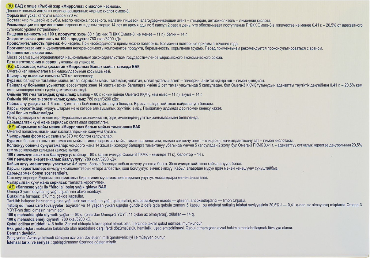 Mirrolla Рыбный жир с маслом чеснока