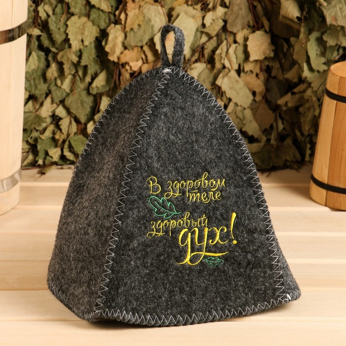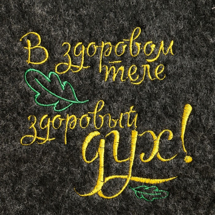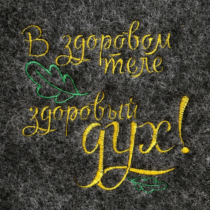 • банная шапка с вышивкой «В здоровом теле здоровый дух»;