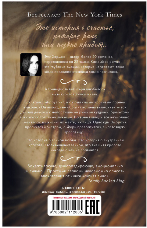Меняя лицаВ данный момент этот товар отсутствует в продаже. Возможно, у нас найдется аналогичный или похожий товар здесь. Серия: Романы Эми Хармон Сколько девчонок мечтают о настоящей любви! Вот и Ферн однажды влюбилась в Эмброуза Янга — спортсмена, звезду школы и настоящего красавца. Если ты всеми любимая роскошная блондинка, как Рита, такого легко соблазнить. Но если ты Ферн — тощая девчонка с непослушными рыжими кудрями, брекетами и в очках с толстыми линзами, все становится не так просто... В школьные годы душа и внутренний мир не всегда ценятся столь высоко, как приятная внешность. Уже на выпускном Ферн поразит одноклассников красотой, однако в душе останется той же простой девчонкой. |