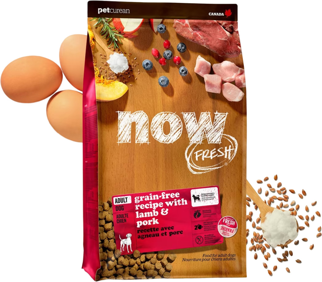 Свежее филе ягненка, цельные сушеные яйца, картофель, горох, гороховая мука, картофельная мука, филе свинины, льняное семя, рапсовое масло, натуральный ароматизатор, кокосовое масло, карбонат кальция, яблоки, сладкий картофель, гороховая клетчатка, монокальций фосфат, люцерна, томат, морковь, тыква, кабачок, бананы, черника, клюква, ежевика, гранат, папайя, чечевица, брокколи, хлорид натрия, сушеный корень цикория, холин хлорид, витамины (витамин E, L-аскорбил-2-полифосфат (источник витамина С), ниацин, пантотенат d-кальция, витамин A, мононитрат тиамина, рибофлавин, бета-каротин, витамин B12, биотин, пиридоксин гидрохлорид, витамин D3, фолиевая кислота), минералы (сульфат железа, протеинат цинка, протеинат железа, селеновые дрожжи, оксид цинка, сульфат меди, протеинат марганца, протеинат меди, оксид марганца, йодат кальция), таурин, сушеный продукт ферментации Lactobacillus acidophilus, сушеный продукт ферментации Enterococcus faecium, DL-метионин, L-лизин, хлорид калия, L-карнитин, сушеный розмарин.