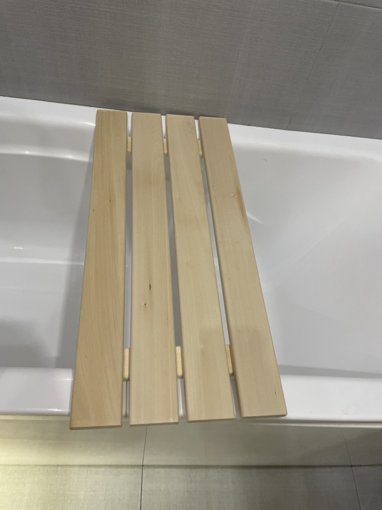 Заменила пластиковую решетку на эту. Очень крепкая, выдерживает большой вес, можно спокойно сидеть. Качественно обработано дерево.