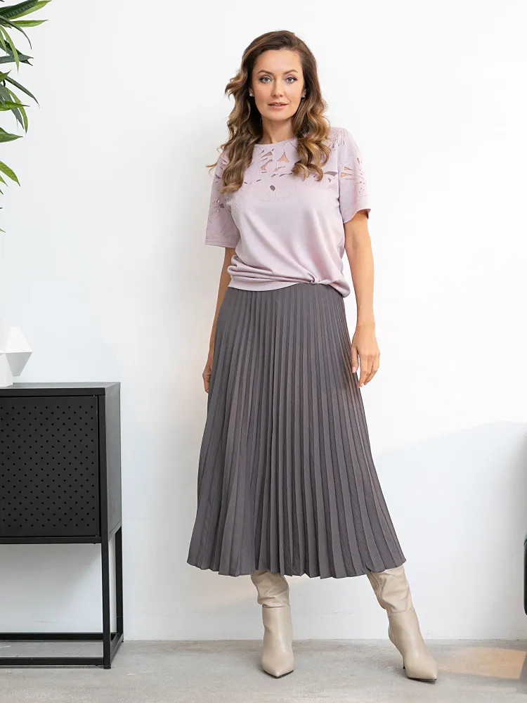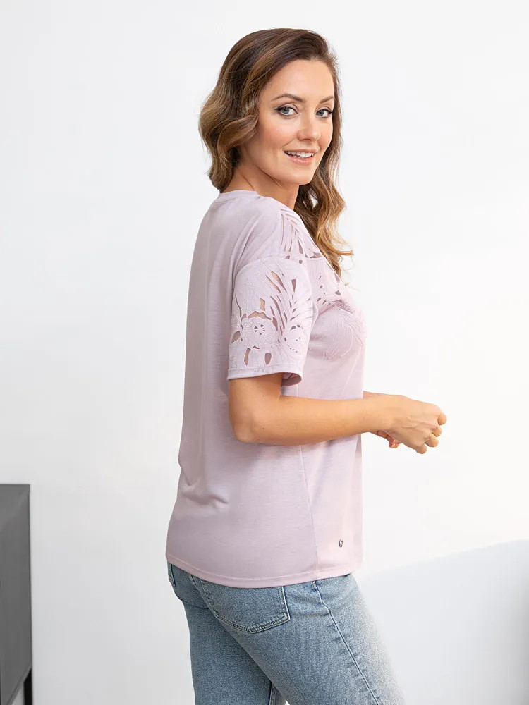 Футболка понравилась.Ткань имеет блеск,не матовая.Ношу 48-й размер,такой и взяла,но оказалась по ширине спинки большая,как на 50-й размер.Но это не критично для меня.Качественный пошив.Своих денег стоит.Спасибо магазину.