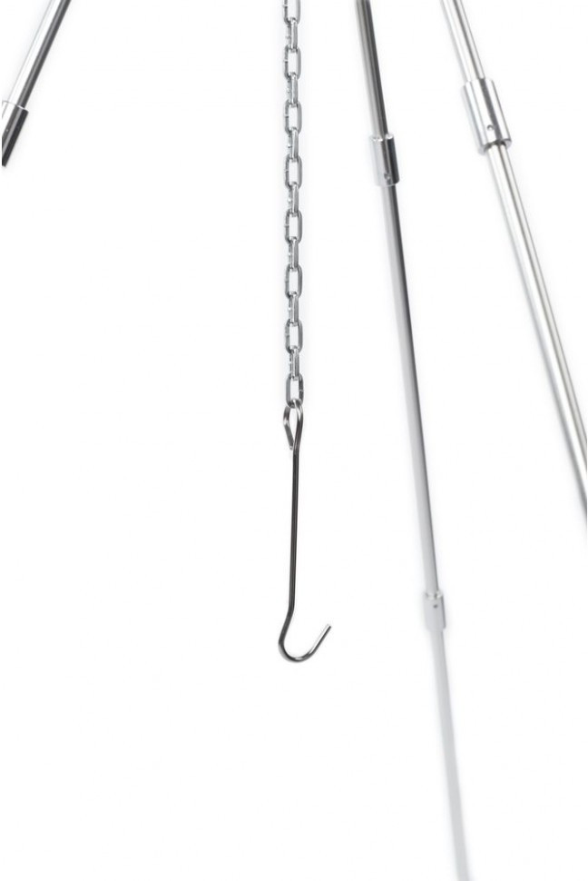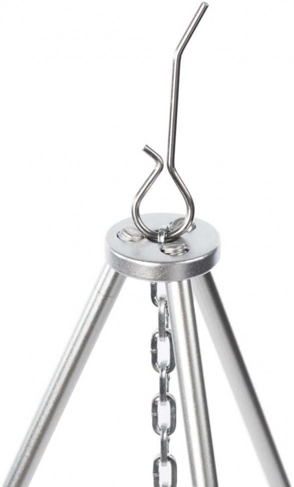 Тренога костровая незаменимый приспособления для приготовления пищи в туристических походах, на рыбалке и охоте. Состоит из трех опор, соединенных в одной точке сверху, к этой же точки присоединен крюк на который подвешивается котел, котелок или чайник. Тренога легко раскладывается и складывается для транспортировки есть чехол.