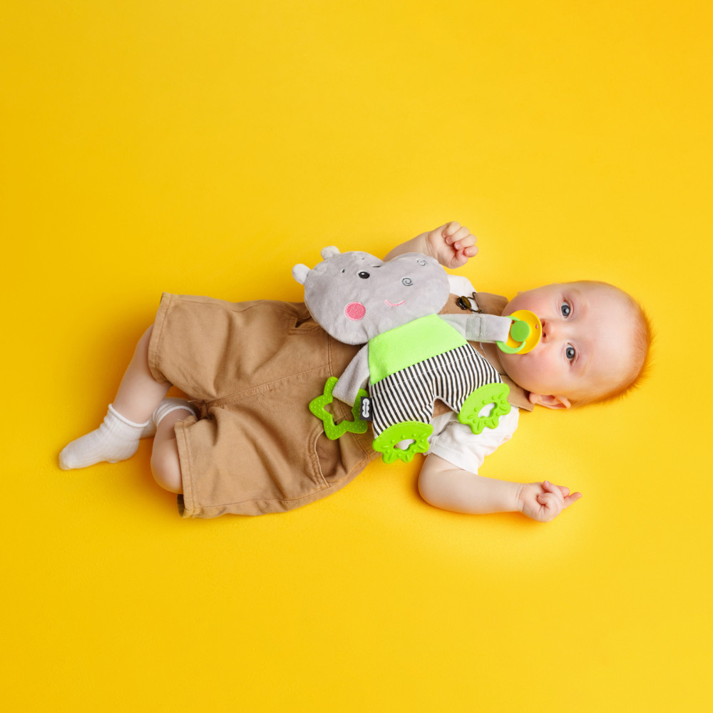 Дополнительно «Бегемотик Димочка» имеет удобный держатель для пустышки — прикрепите соску или погремушку для новорожденного к лапке зверька. Особенно эта функция понравится родителям, чьи крохи часто выкидывают соску изо рта на пол. «Димочка» поможет в развитии мелкой моторики ручек малыша, которая очень важна для правильного формирования речевых центров, координации и внимания.