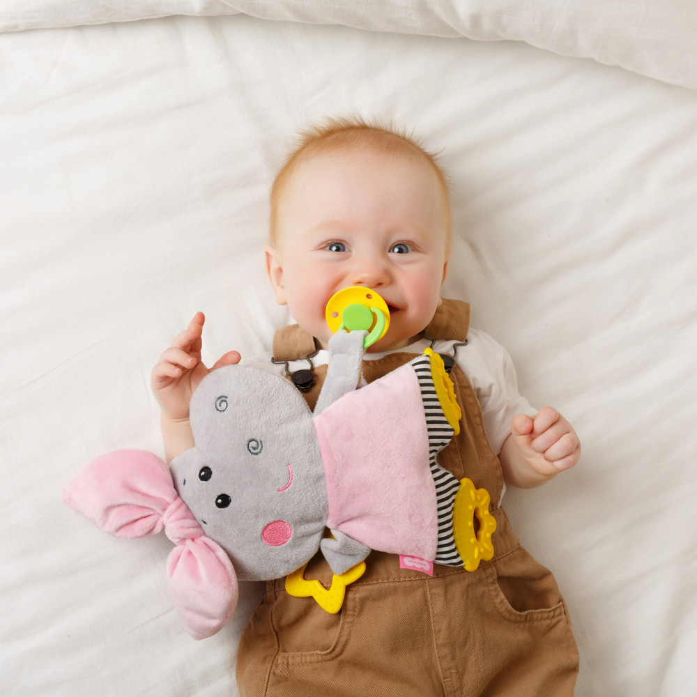 Дополнительно «Бегемотик Милочка» имеет удобный держатель для пустышки — прикрепите соску или погремушку для новорожденного к лапке зверька. Особенно эта функция понравится родителям, чьи крохи часто выкидывают соску изо рта на пол. «Милочка» поможет в развитии мелкой моторики ручек малыша, которая очень важна для правильного формирования речевых центров, координации и внимания.