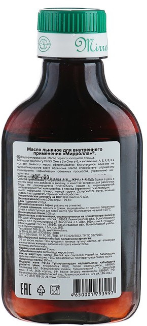Mirrolla Масло льняное пищевоеВ данный момент этот товар отсутствует в продаже. Возможно, у нас найдется аналогичный или похожий товар здесь. Льняное масло — источник незаменимых полиненасыщенных жирных кислот. Оно содержит витамины A, E, F, K, группы B, бета-каротин и минералы. По содержанию ненасыщенных жирных кислот льняное масло в 2 раза превосходит рыбий жир. |