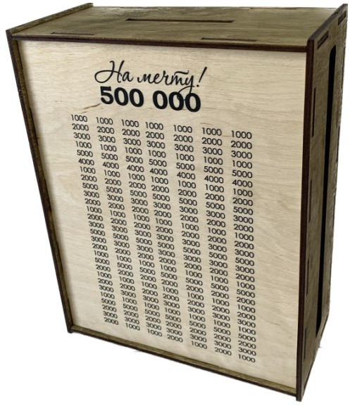 Качественная и оригинальная копилка производства «Gbox». Поможет легко и весело собрать внушительную сумму денег, и потратить ее на мечту! Станет отличным подарком для Ваших друзей и родных. Всё очень просто! Выбери цифру, зачеркни, и положи равнозначную ей сумму в отверстие сверху. Наблюдай за уровнем накоплений благодаря шкале сбоку. Когда все цифры будут зачёркнуты, вскрой копилку, с помощью специального прямоугольника на дне и достань содержимое!