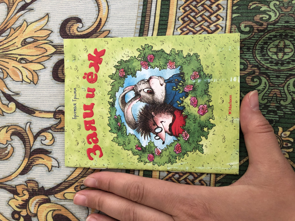 Книга размером с ладонь, что удобно маленькому ребенку держать в руках и перелистывать самостоятельно.Изображения красивые.