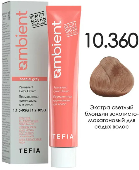 Tefia Крем-краска для волос перманентная, оттенок 10.360 Экстра светлый блондин золотисто-махагоновый для седых волос