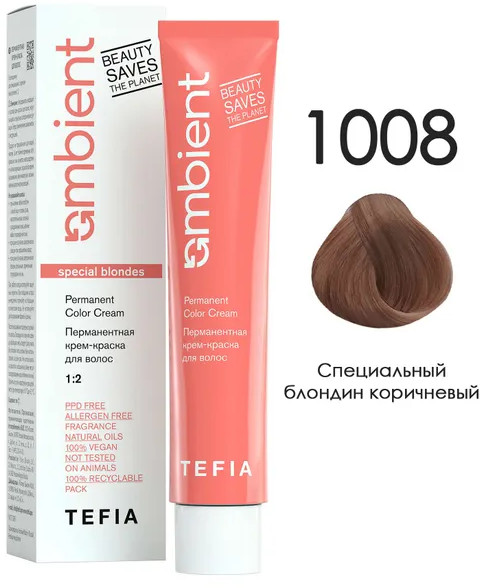 Tefia Крем-краска для волос перманентная, оттенок 1008 Специальный блондин коричневый