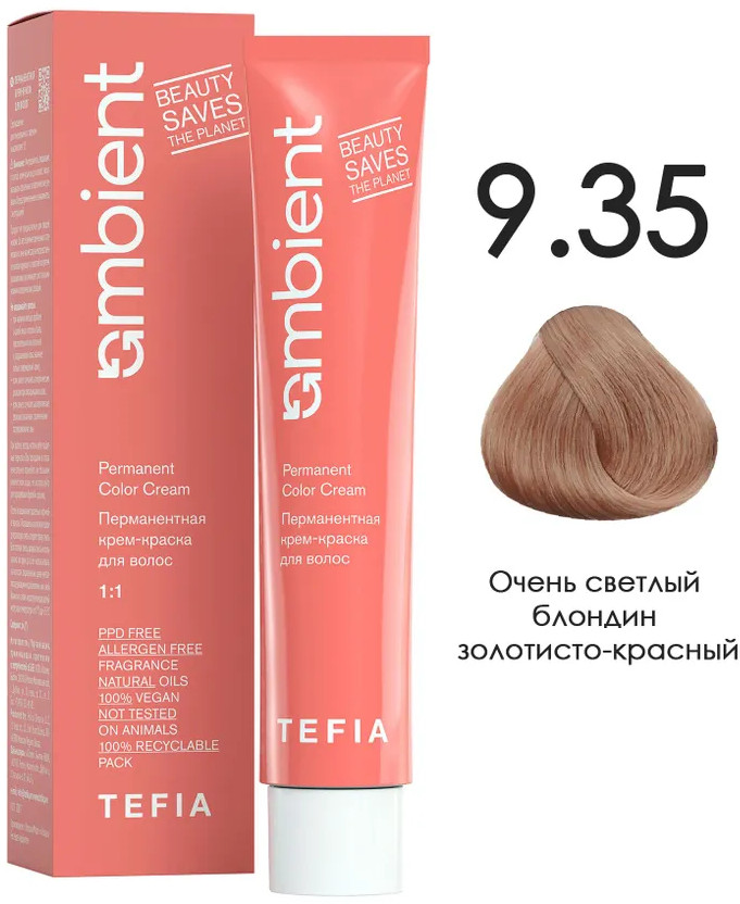 Tefia Крем-краска для волос перманентная, оттенок 9.35 очень светлый блондин золотисто-красный