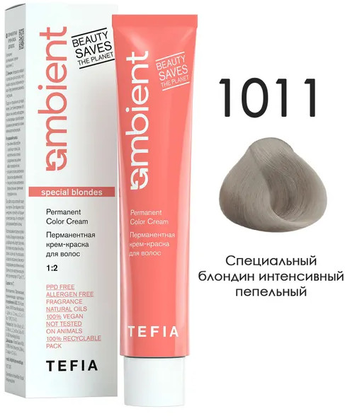 Tefia Крем-краска для волос перманентная, оттенок 1011 Специальный блондин интенсивный пепельный