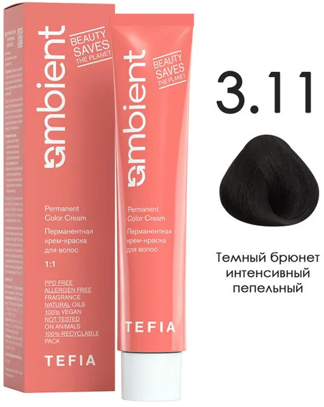 Tefia Крем-краска для волос перманентная, оттенок 3.11 Темный брюнет интенсивный пепельный