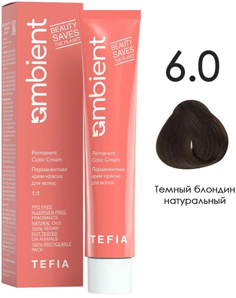 Tefia Крем-краска для волос перманентная, оттенок 6.0 Темный блондин натуральный