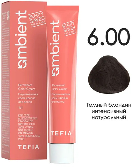Tefia Крем-краска для волос перманентная, оттенок 6.00 Темный блондин интенсивный натуральный