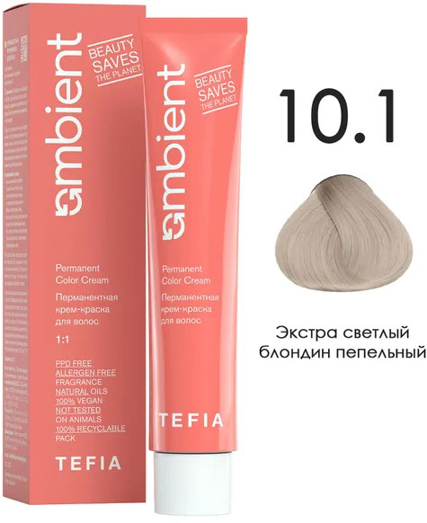 Tefia Крем-краска для волос перманентная, оттенок 10.1 Экстра светлый блондин пепельный