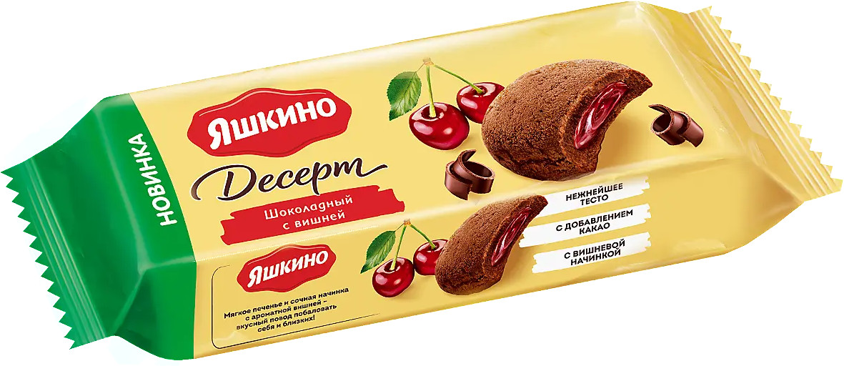 Мягкое шоколадное печенье с сочной начинкой с кусочками ароматной вишни. Шоколадный десерт «Яшкино» отлично сочетается с чаем, кофе и другими напитками. Нежнейшее сдобное тесто с добавлением какао. |