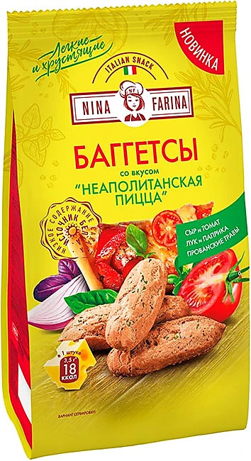 KDV group Баггетсы «Неаполитанская пицца»В данный момент этот товар отсутствует в продаже. Возможно, у нас найдется аналогичный или похожий товар здесь. Хрустящие и воздушные Баггетсы — снеки нового поколения. Яркий вкус любимой пиццы им придают натуральные ингредиенты: сыр, томат, лук, паприка и пряные травы. |