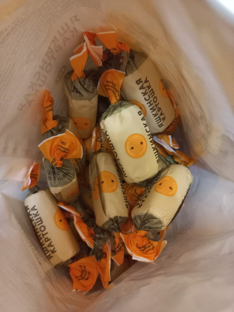 Вкусные конфеты, на картошку конечно оооочень мало похоже. но в чаем заходят на ура. И цена приемлемая у них.
