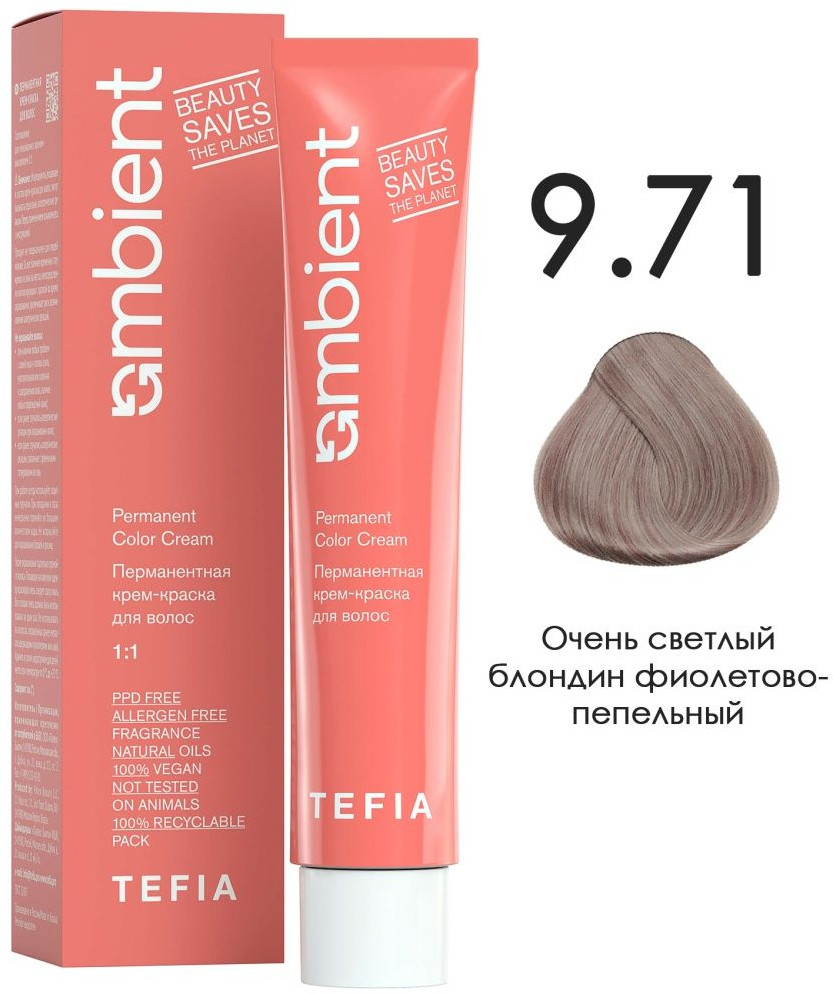 Tefia Крем-краска для волос, оттенок 9.71 Очень светлый блондин фиолетово-пепельный