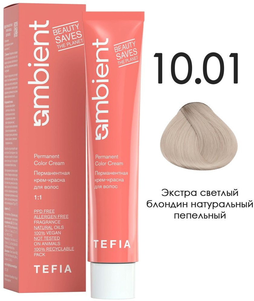 Tefia Крем-краска для волос, оттенок 10.01 Экстра светлый блондин натуральный пепельный