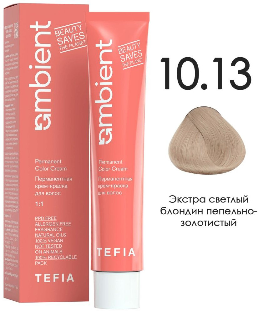 Tefia Крем-краска для волос, оттенок 10.13 Экстра светлый блондин пепельно-золотистый